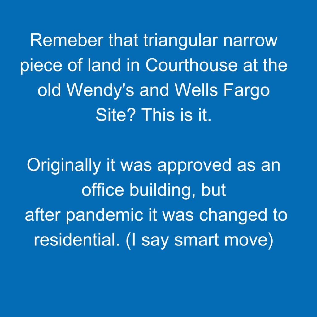Originally it was approved as an office building, but in 2021 the builder filed an amendment to change the use to residential- which is a very smart move given the post-pandemic office market.