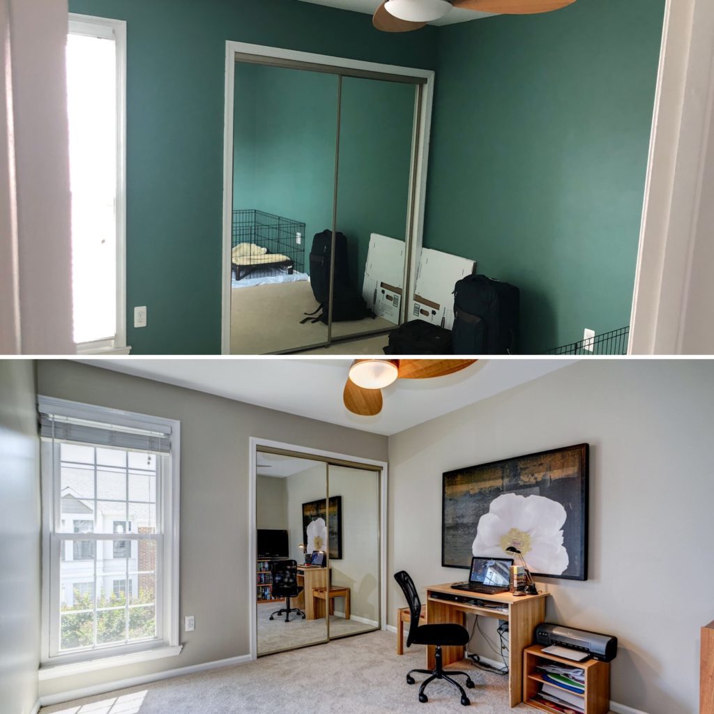 Before and after guest bedroom. Painted the walls and moved the desk from the master to the guest bedroom.
